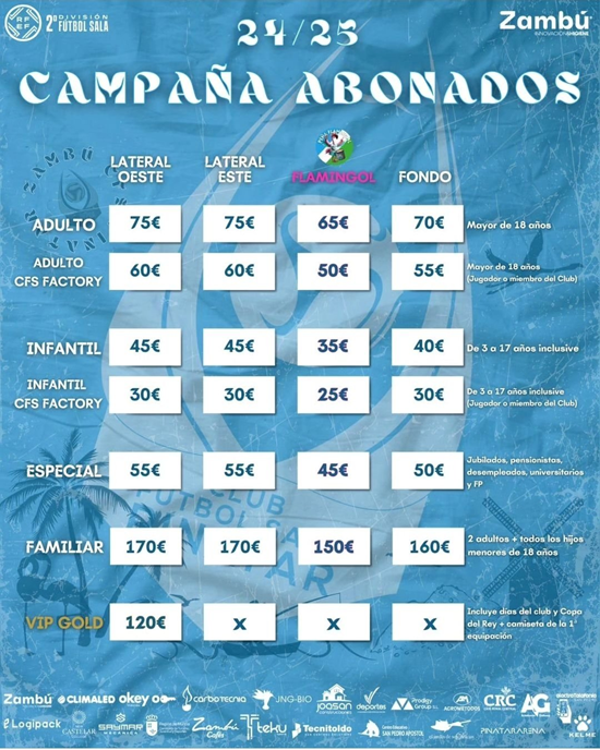 Zambú CFS Pinatar amplía el plazo de la campaña de abonos para la temporada 2024/2025. Todas aquellas personas que todavía no hayan conseguido su abono pueden hacerlo hasta el próximo sábado12 de octubre, día en el que el cuadro pinatarense disputará su segundo partido como local esta temporada. Los de Óscar Poveda se enfrentarán al CD Sporting FS La Nucía, en un encuentro correspondiente a la jornada 4 en la Segunda División de fútbol sala.