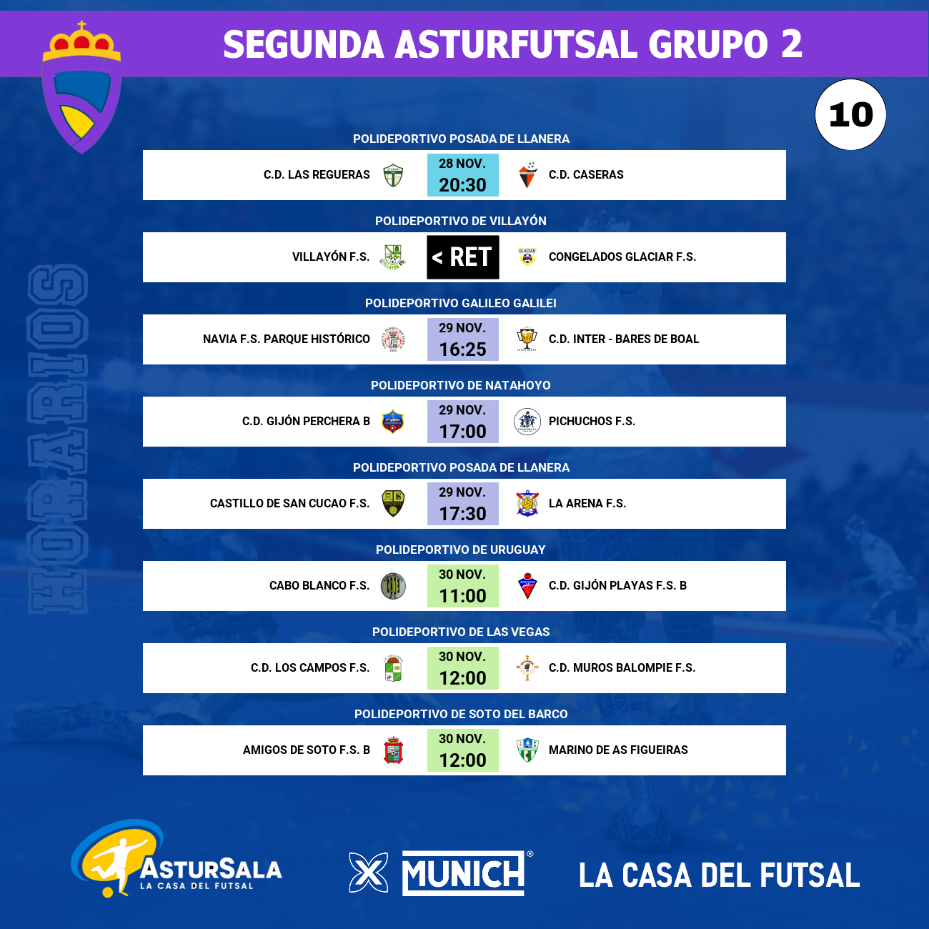 Con el Amigos de Soto B obligado a reaccionar tras su primera derrota, El Arena FS y el Los Campos FS tienen una oportunidad de oro para asaltar la primera posición. El Pichuchos FS y el Inter Bares de Boal también quieren seguir creciendo en una competición que se ha convertido en un auténtico espectáculo de goles y emoción. La décima jornada promete ser decisiva y dejar titulares que marcarán el rumbo de la Segunda Asturfutsal Grupo II.
