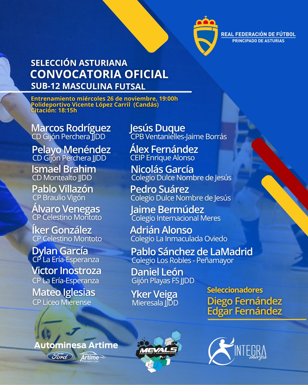 Nueva convocatoria de la Selección Asturiana Sub-12 de Fútbol Sala